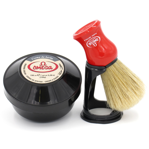 Набор для бритья Omega Помазок (кабан) + Подставка + мыло/крем 150 мл эвкалипт Сделано в Италии