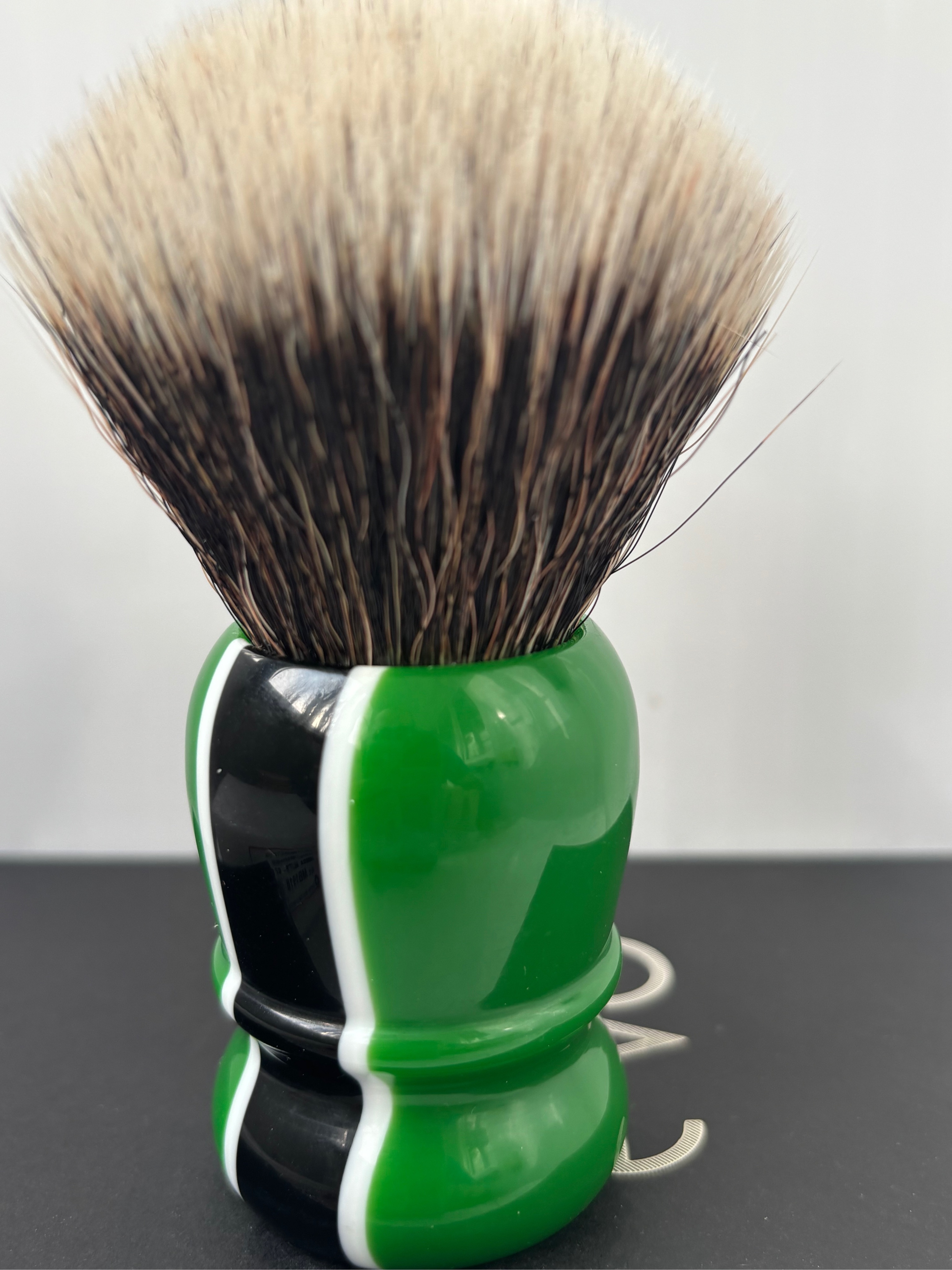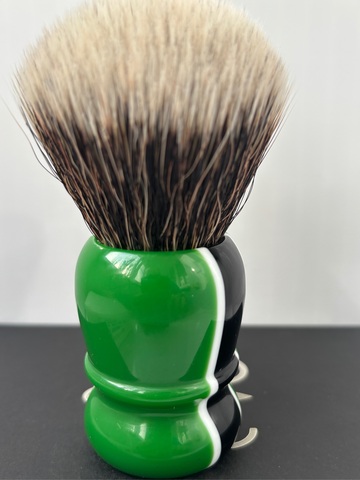 Помазок оснащён узлом из синтетического волокна последнего поколения, максимально приближенного по своим свойствам к натуральному барсучьему ворсу: